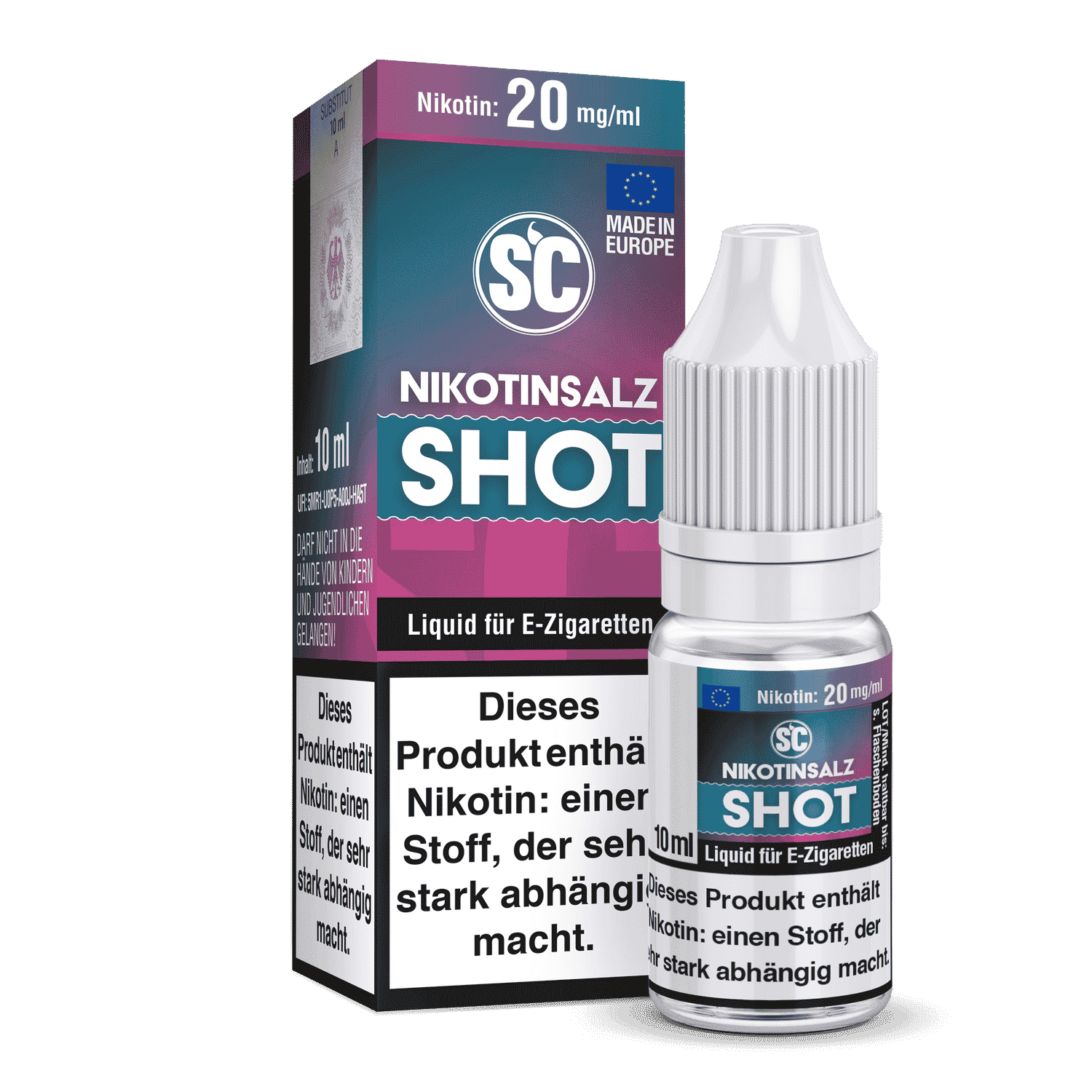 Jede Flasche des SC Nikotinsalz Shots enthält 10 ml der Lösung, die ideal für die präzise Dosierung und Anwendung ist. Mit einer Nikotinkonzentration von 20 mg/ml bietet dieser Shot eine kraftvolle Option für Nutzer, die eine stärkere Nikotinwirkung in ihren E-Liquids wünschen. Dies macht ihn zu einer idealen Wahl für erfahrene Dampfer sowie für Umsteiger von herkömmlichen Zigaretten, die nach einer zufriedenstellenden Nikotinzufuhr suchen.