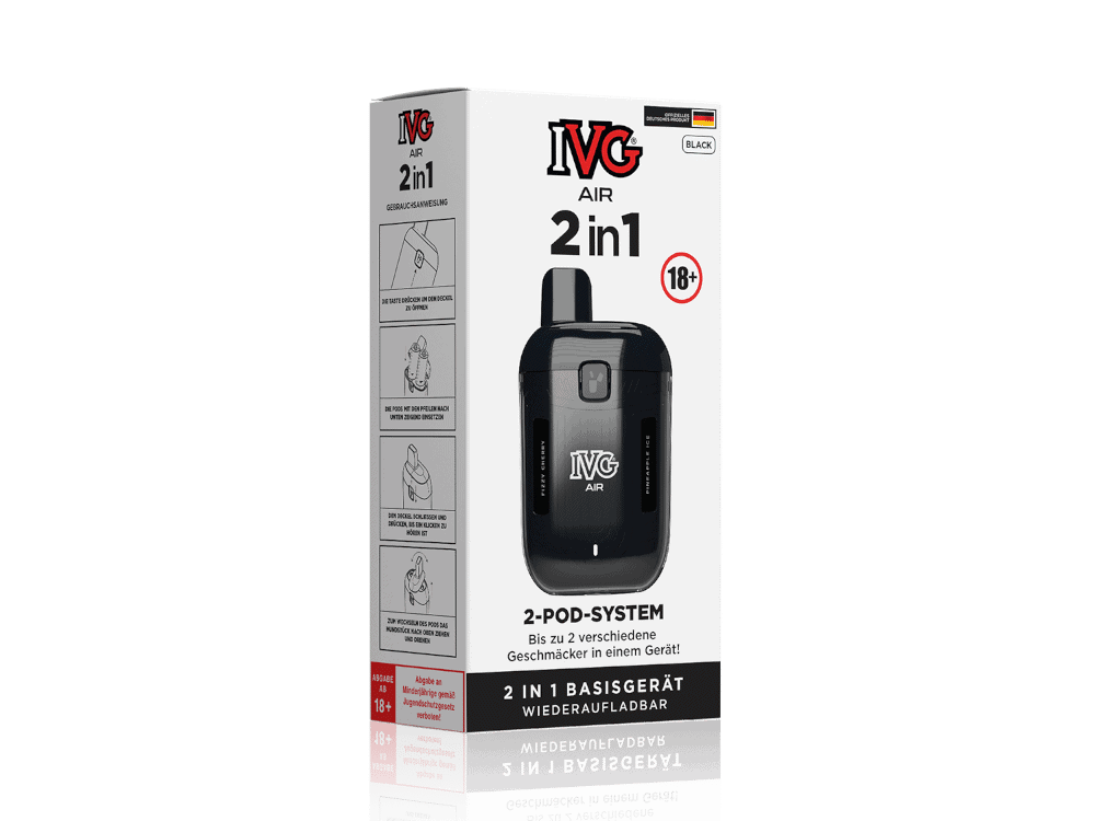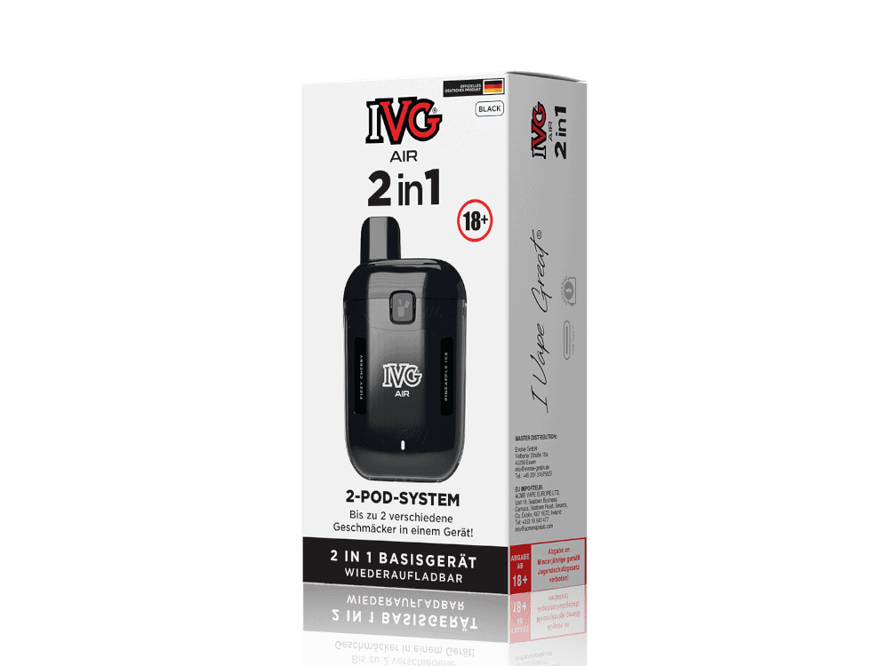 Für Dampfer, die auf eine hohe Benutzerfreundlichkeit und die Freiheit, zwischen zwei Geschmacksrichtungen zu wechseln, Wert legen, ist das IVG AIR 2in1 Akku-Basisgerät die ideale Lösung.