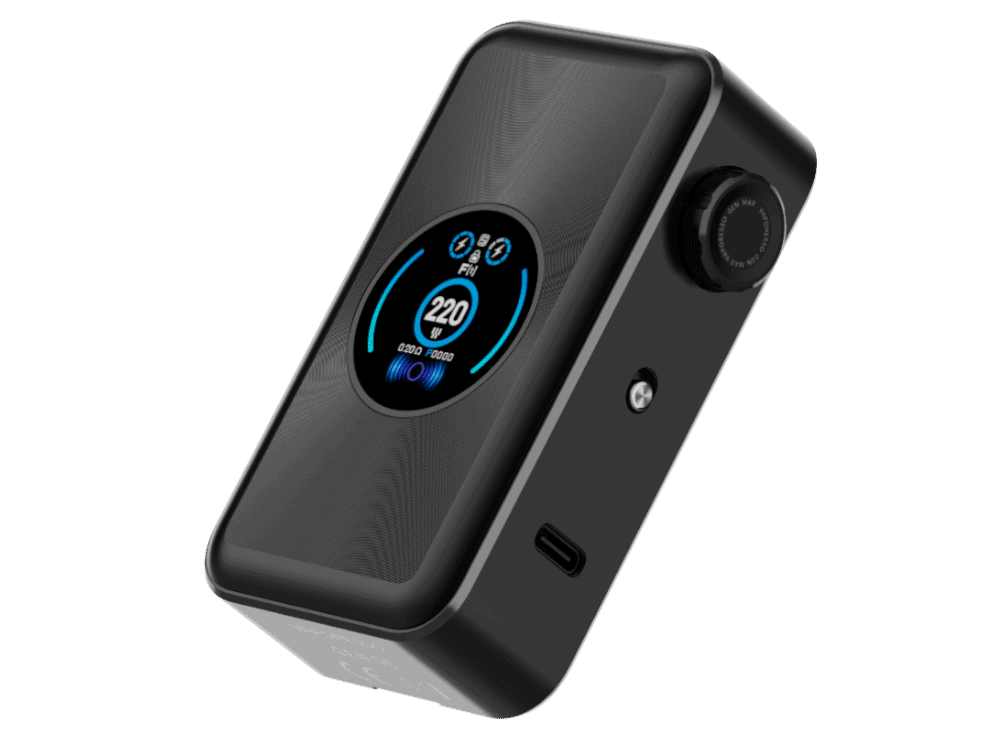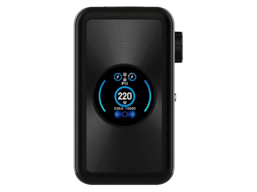 Ein besonderes Highlight dieses Akkuträgers ist die einzigartige Bedienung: Die Feuertaste und der Einstellknopf wurden in einem benutzerfreundlichen Element vereint. Mit einer simplen Drehbewegung der Feuertaste können Sie sämtliche Einstellungen anpassen, ohne umständlich durch Menüs navigieren zu müssen. Das integrierte 0,96” TFT-Farbdisplay zeigt Ihnen auf einen Blick die aktuelle Ausgangsleistung und den Akkustand an. Zusätzlich lässt sich die Benutzeroberfläche personalisieren – wählen Sie zwischen den Themes „Fußball“, „Ufo“ und „Allgemein“, um dem Display einen ganz persönlichen Touch zu verleihen.
