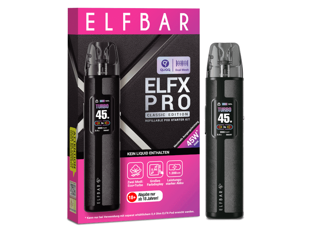 Zusätzlich sorgt eine Zugautomatik dafür, dass du das Gerät einfach durch das Ziehen aktivieren kannst – ganz ohne Tastenbetätigung. Damit kombiniert der Elfx Pro eine moderne Technologie mit maximalem Bedienkomfort und eignet sich sowohl für Einsteiger als auch für erfahrene Dampfer, die auf Flexibilität und Leistung setzen.