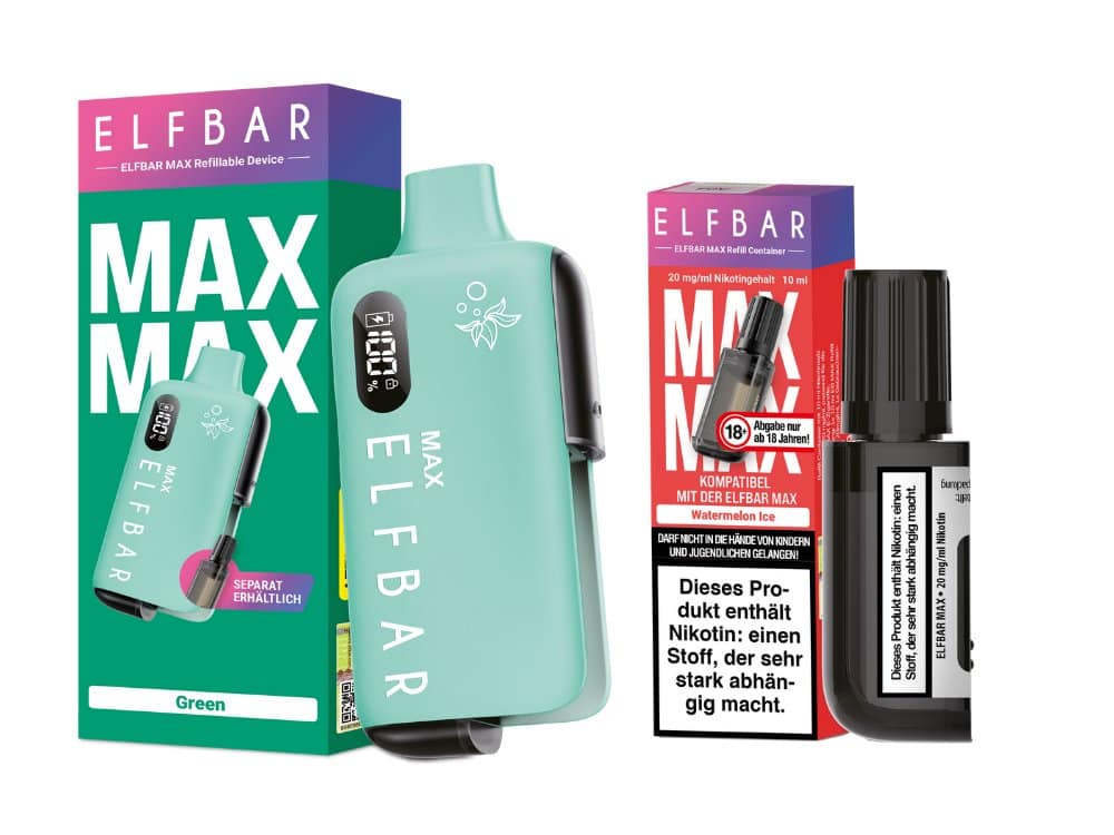 Bitte beachten Sie: Das Elfbar Max Kit und die Elfbar Max Refill Container werden in separaten Verpackungen geliefert.