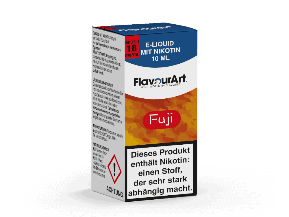 Mit Fuji von FlavourArt holen Sie sich den fruchtigen Geschmack sonnengereifter Äpfel direkt in Ihre E-Zigarette. Inspiriert vom berühmten Fuji-Apfel, vereint dieses Liquid die süßen Noten roter Äpfel mit der frischen Säure gelber Sorten – harmonisch ausbalanciert und angenehm rund im Dampfverhalten. Der Geschmack erinnert an frisch aufgeschnittenes Obst: knackig, saftig und frei von künstlichen Untertönen.