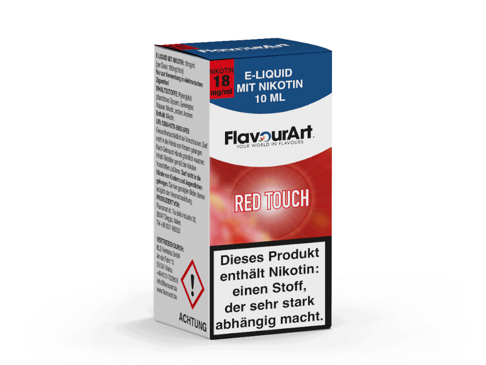 Das Liquid ist in einer 10 ml PET-Flasche mit schmaler Tropfspitze abgefüllt, wodurch das Nachfüllen des Verdampfers mühelos und sauber gelingt. Erhältlich in drei Nikotinstärken – 4,5 mg/ml, 9 mg/ml und 18 mg/ml – lässt sich Red Touch flexibel an individuelle Vorlieben anpassen. Produziert wird es unter pharmazeutischen Bedingungen in Italien und überzeugt durch gleichbleibend hohe Qualität sowie ein sortentypisches Aroma.