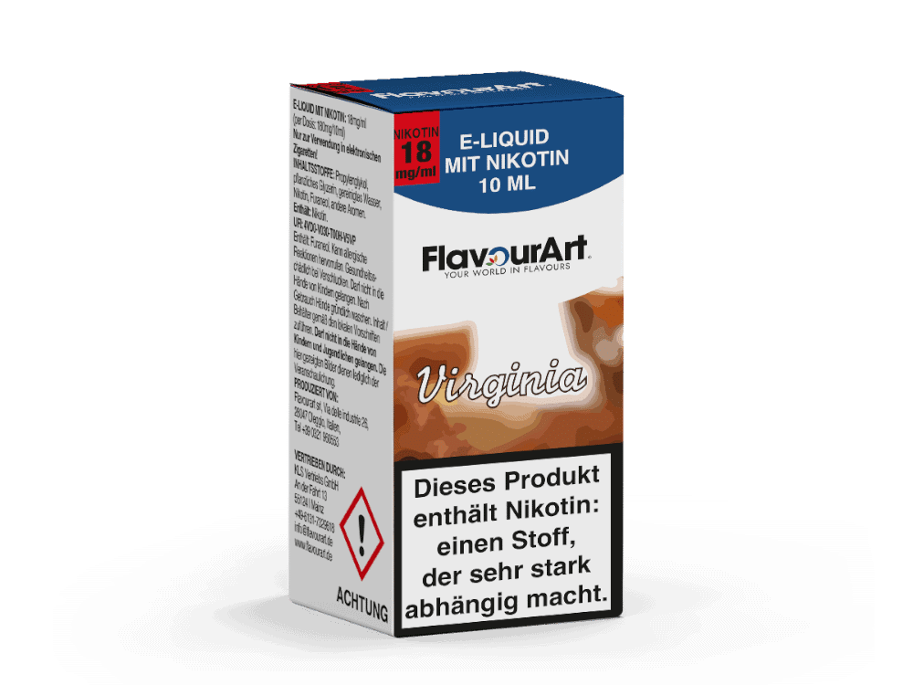 Mit dem Virginia E-Liquid von FlavourArt erwartet Sie ein fein abgestimmtes Tabakaroma, das klassische Virginia-Tabaknoten mit einer leichten, beinahe kräuterartigen Teenuance kombiniert. Der Geschmack ist rund, dezent süßlich und angenehm weich im Abgang – perfekt für alle, die ein ausgewogenes und unaufdringliches Tabakliquid suchen. Virginia wirkt weder zu kräftig noch zu flach, sondern trifft eine geschmackliche Mitte, die sowohl Einsteiger als auch erfahrene Dampfer überzeugt.
