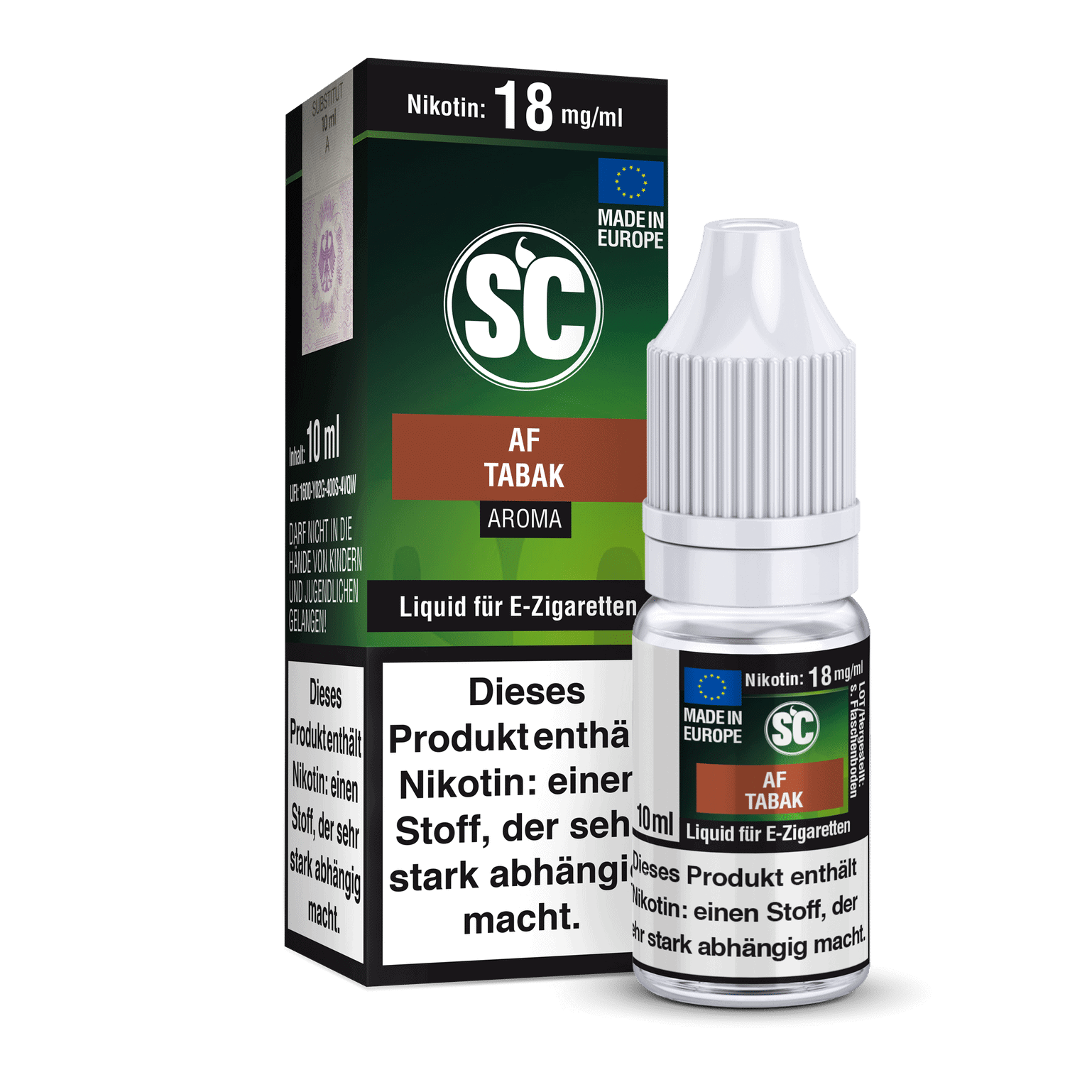 Jede Flasche “SC Liquid – AF Tabak” beinhaltet 10 ml unseres sorgfältig ausgewählten Liquids. Sie haben die Freiheit, aus fünf verschiedenen Stärken zu wählen, mit oder ohne Nikotin, um Ihre individuellen Vorlieben zu erfüllen. Das Aroma von “SC AF Tabak” zeichnet sich durch seinen authentischen, reichen Tabakgeschmack aus, der bei jedem Zug eine tiefe Befriedigung bietet. Genießen Sie die Perfektion in jedem Tropfen!