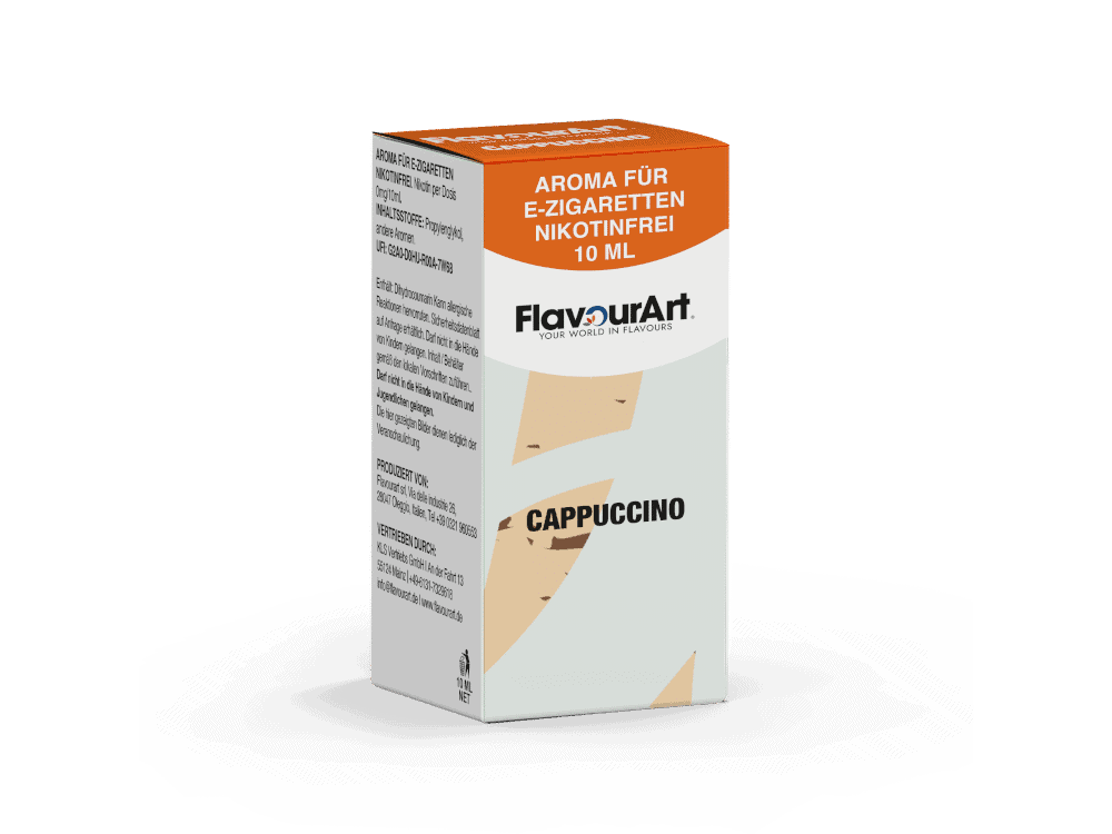 Mit dem Cappuccino Aroma von FlavourArt erwartet Sie eine harmonische Komposition aus kräftigem Espresso und cremigem Milchschaum – eingefangen in einer 10 ml Flasche als hochkonzentriertes Aroma. Der Geschmack erinnert an einen frisch zubereiteten Cappuccino, wie man ihn aus dem Café kennt: leicht süß, aromatisch und mit einer angenehmen Röstaromatik.