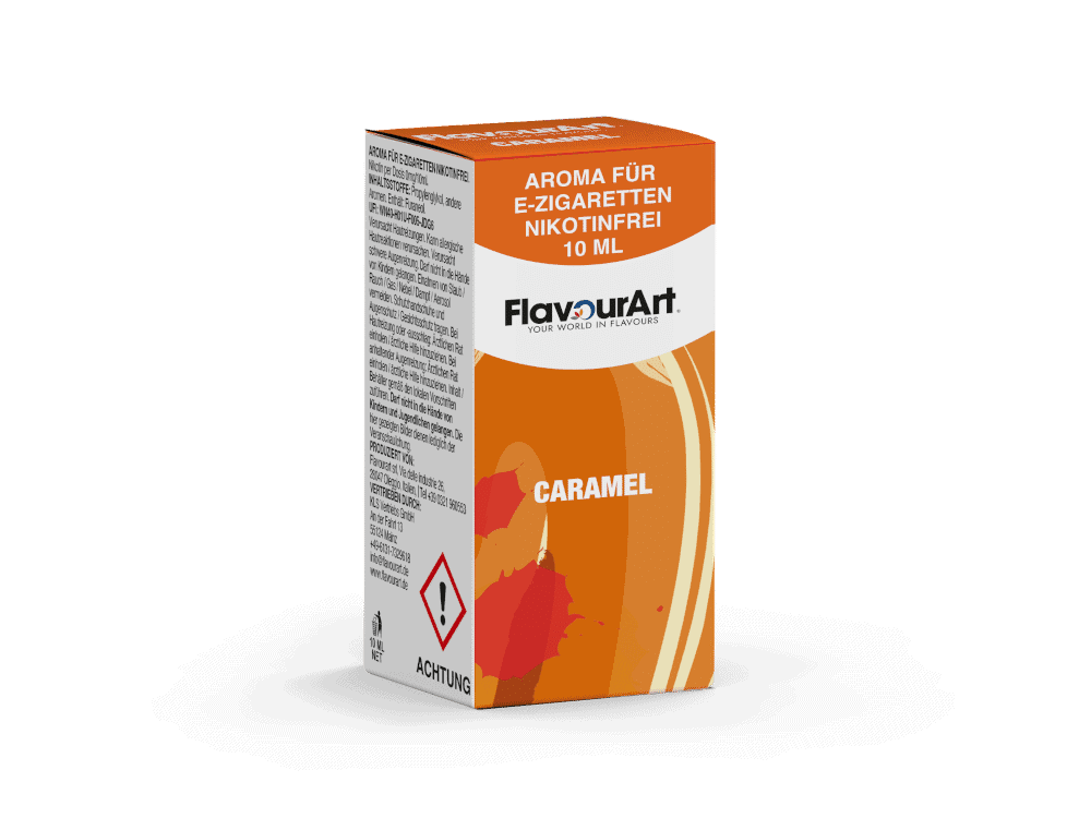 Als hochkonzentriertes Aroma ist Caramel ausschließlich für die Herstellung eigener E-Liquids vorgesehen. Vor dem Dampfen muss es mit einer geeigneten Basisflüssigkeit und – falls gewünscht – Nikotinshots gemischt werden. FlavourArt empfiehlt eine Dosierung von 2–3 %, um die aromatische Süße optimal zur Geltung zu bringen.