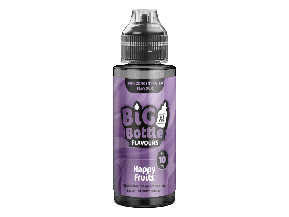 “Big Bottle Happy Fruits” ist ein Longfill-Aroma, das Sie in eine bunte Welt voller Fruchtgeschmack entführt. Jedes Mal, wenn Sie dieses Aroma mit Ihrer E-Zigarette dampfen, entfaltet sich eine Symphonie aus süßer Blaubeere, tropischer Guave und der exotischen Drachenfrucht, abgerundet durch eine erfrischende Note, die dem Geschmackserlebnis eine belebende Frische verleiht.