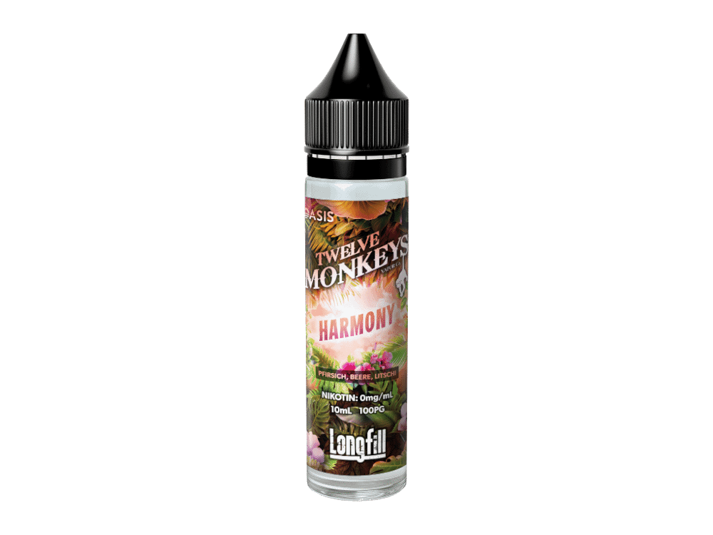 Pro Bestellung erhalten Sie eine 60 ml Flasche, die mit 10 ml des hochkonzentrierten Harmony Aromas vorgefüllt ist. Dieses Longfill-Aromakonzentrat sollte nicht pur gedampft werden, sondern entfaltet seine volle Geschmacksvielfalt nach dem Mischen mit Ihrer Lieblingsbase. Lassen Sie sich von Twelve Monkeys Harmony in eine Welt des harmonischen Geschmacks entführen und erleben Sie das fruchtige Zusammenspiel von Pfirsich, Beeren und Litschi in vollen Zügen!