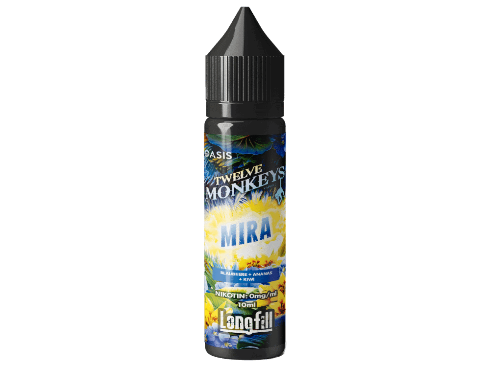 Tauchen Sie ein in die exotische Welt des Twelve Monkeys – Mira Longfill Aroma! Diese fruchtige Geschmackskomposition vereint das süße Aroma reifer Blaubeeren mit der tropischen Frische saftiger Ananas und der spritzigen Note von Kiwi. Mira ist eine verführerische Kombination, die bei jedem Zug an einen exotischen Fruchtcocktail erinnert und Ihre Sinne auf eine Reise in ferne, sonnige Gefilde entführt. Perfekt für Dampfer, die das Besondere suchen und ein fruchtiges Geschmackserlebnis genießen möchten, das den Gaumen verzaubert.