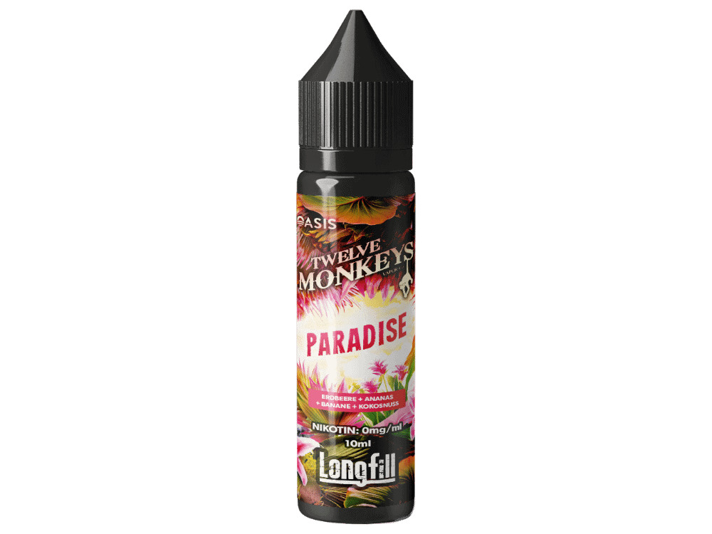 Entdecken Sie das Paradies in Flaschenform mit dem Twelve Monkeys – Paradise Longfill Aroma! Dieses Aroma ist eine exotische Komposition aus saftigen Erdbeeren, süßer Ananas, cremiger Banane und einem Hauch Kokosnuss – eine Kombination, die wie ein Kurzurlaub am Strand schmeckt. Jeder Zug entführt Sie in eine tropische Geschmackswelt, die die perfekte Balance aus fruchtiger Frische und cremigem Genuss bietet. Paradise ist der ideale Begleiter für Dampfer, die sich nach einem Hauch von Sommer und Fernweh sehnen, egal zu welcher Jahreszeit.