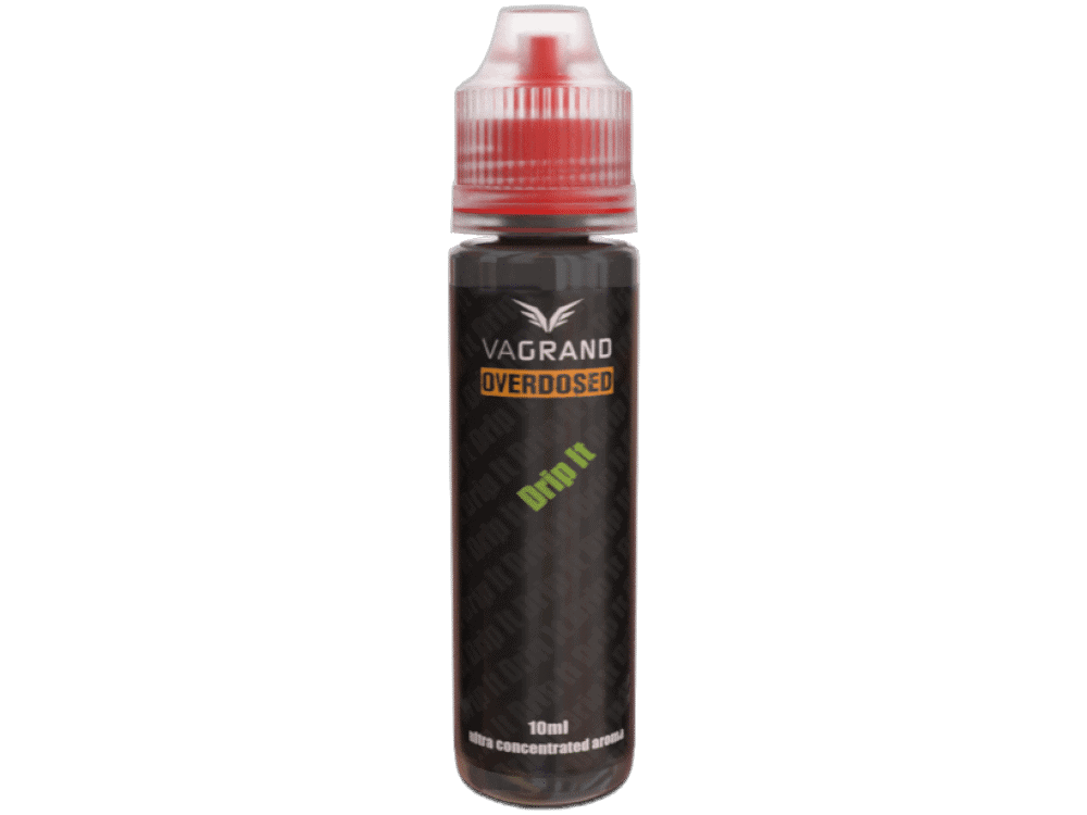 Das Vagrand Overdosed Drip It Longfill wird in einer 60 ml fassenden Flasche geliefert, die 10 ml hochkonzentriertes Aroma enthält. Diese hohe Konzentration garantiert eine kräftige Geschmacksentfaltung, weshalb das Aroma vor dem Gebrauch unbedingt mit einer Base gemischt werden muss und nicht pur gedampft werden sollte.