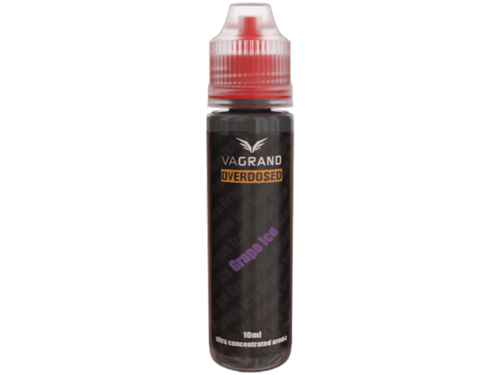 Das Vagrand Overdosed Grape Ice Longfill wird in einer 60 ml fassenden Flasche geliefert, die 10 ml hochkonzentriertes Aroma enthält. Diese hohe Konzentration garantiert eine kräftige Geschmacksentfaltung, weshalb das Aroma vor dem Gebrauch unbedingt mit einer Base gemischt werden muss und nicht pur gedampft werden sollte.