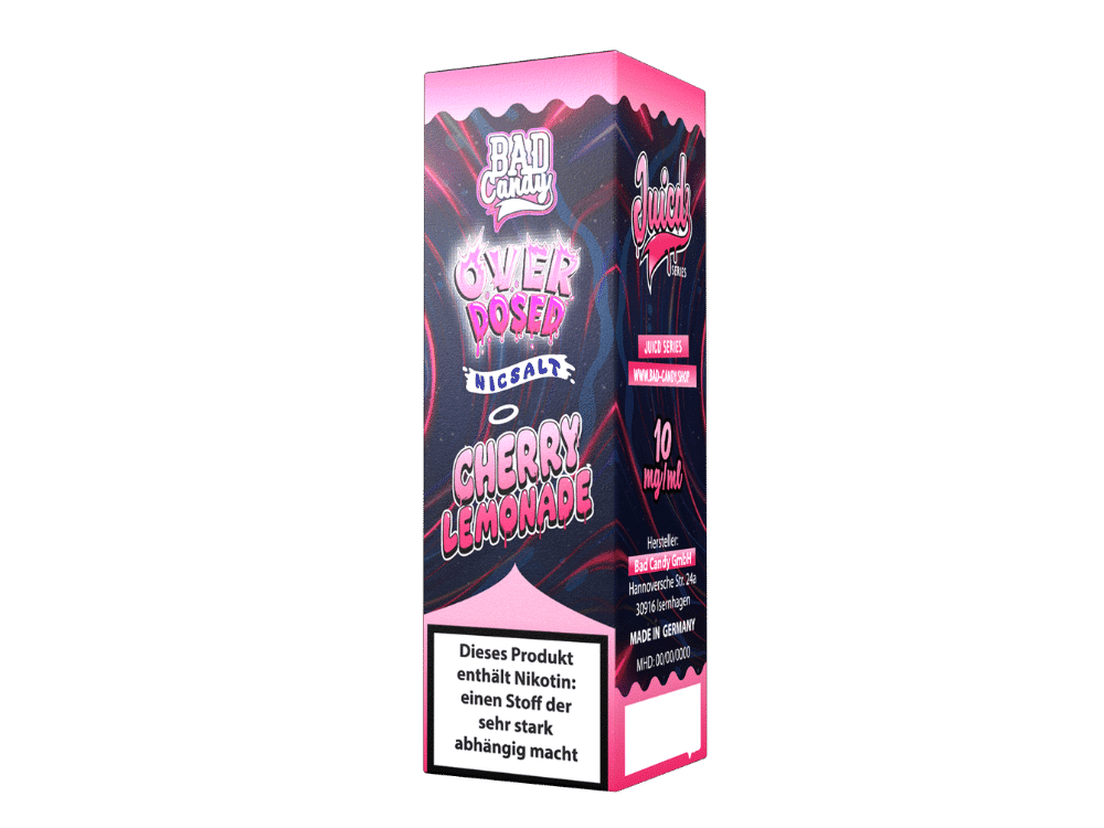 Fruchtig, spritzig und erfrischend – das Cherry Lemonade Nikotinsalz Liquid aus der Juicd-Serie von Bad Candy Liquids kombiniert den süßen Geschmack reifer Kirschen mit der belebenden Spritzigkeit frischer Limettenlimonade. Die vollmundige Kirschsüße entfaltet sich mit jedem Zug, während die spritzige Limette eine angenehme Säurenote beisteuert, die das Aroma perfekt ausbalanciert. Eine sanfte kühle Nuance verleiht dem Liquid eine erfrischende Leichtigkeit, die es besonders angenehm zu dampfen macht.
