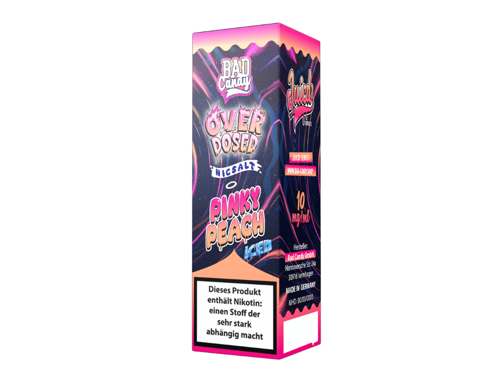 Ein fruchtiger Genuss mit erfrischendem Twist – das Pinky Peach Nikotinsalz Liquid aus der Juicd-Serie von Bad Candy Liquids bringt den vollen Geschmack sonnengereifter Pfirsiche in deine E-Zigarette. Die natürliche Süße und das saftige Aroma des Pfirsichs entfalten sich bei jedem Zug, begleitet von einer dezenten Frische, die für eine angenehme Leichtigkeit sorgt. Dieses Liquid vereint fruchtige Intensität mit einem erfrischenden Hauch, der das Dampferlebnis besonders geschmeidig macht.