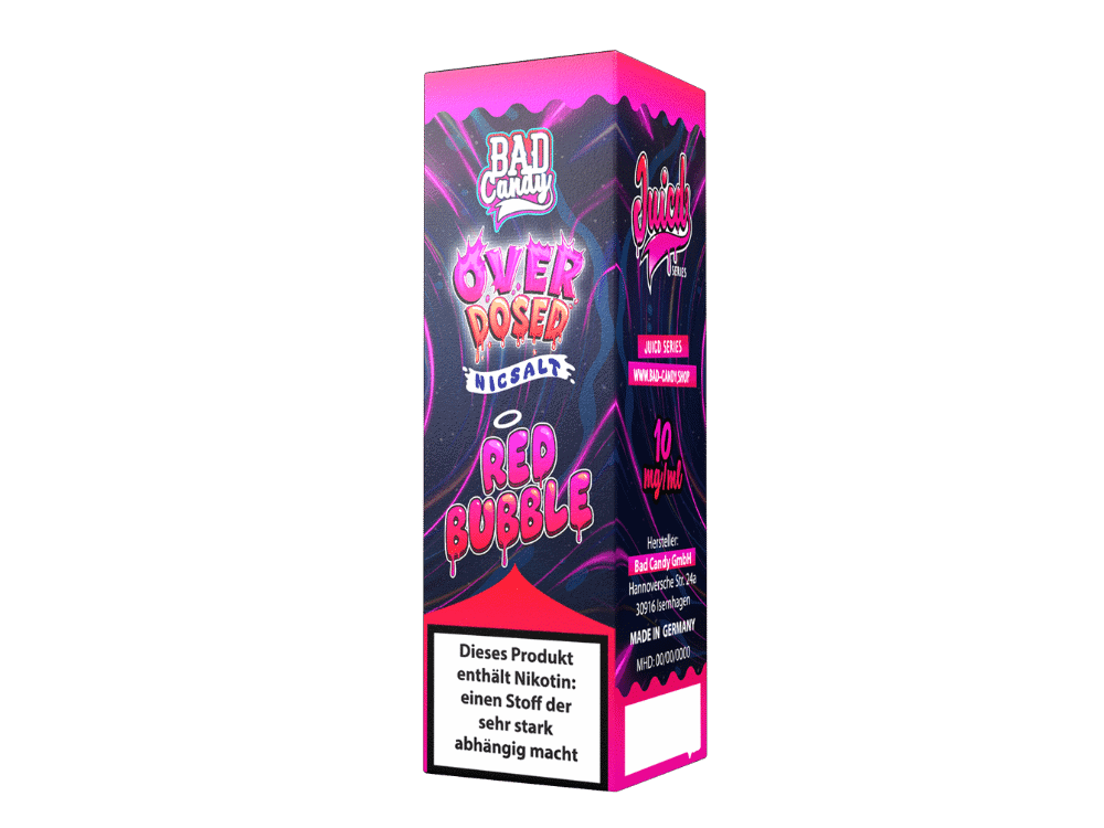 Ein Hauch Kindheitserinnerung in jeder Dampfwolke – das Red Bubble Nikotinsalz Liquid aus der Juicd-Serie von Bad Candy Liquids vereint den süßen, intensiven Geschmack saftiger roter Beeren mit dem unverwechselbaren Aroma von frischem Kaugummi. Die Kombination aus fruchtiger Süße und der typischen Kaugummi-Note sorgt für ein außergewöhnliches Geschmackserlebnis, das mit einer dezenten Frische angenehm abgerundet wird. Jeder Zug erinnert an den ersten Biss in ein süßes, fruchtiges Kaugummi, das den Mund mit Geschmack füllt.
