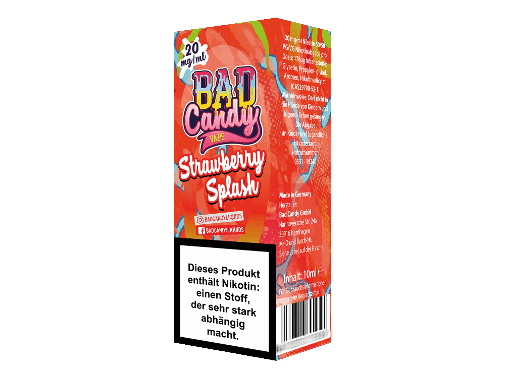 Genießen Sie den puren Geschmack der Erdbeeren mit Strawberry Splash und lassen Sie sich von der Frische und Süße dieser köstlichen Frucht verführen. Bestellen Sie noch heute das Nikotinsalz Liquid “Bad Candy Liquids – Strawberry Splash” und erleben Sie ein Dampfvergnügen, das den Sommer in Ihre E-Zigarette zaubert.