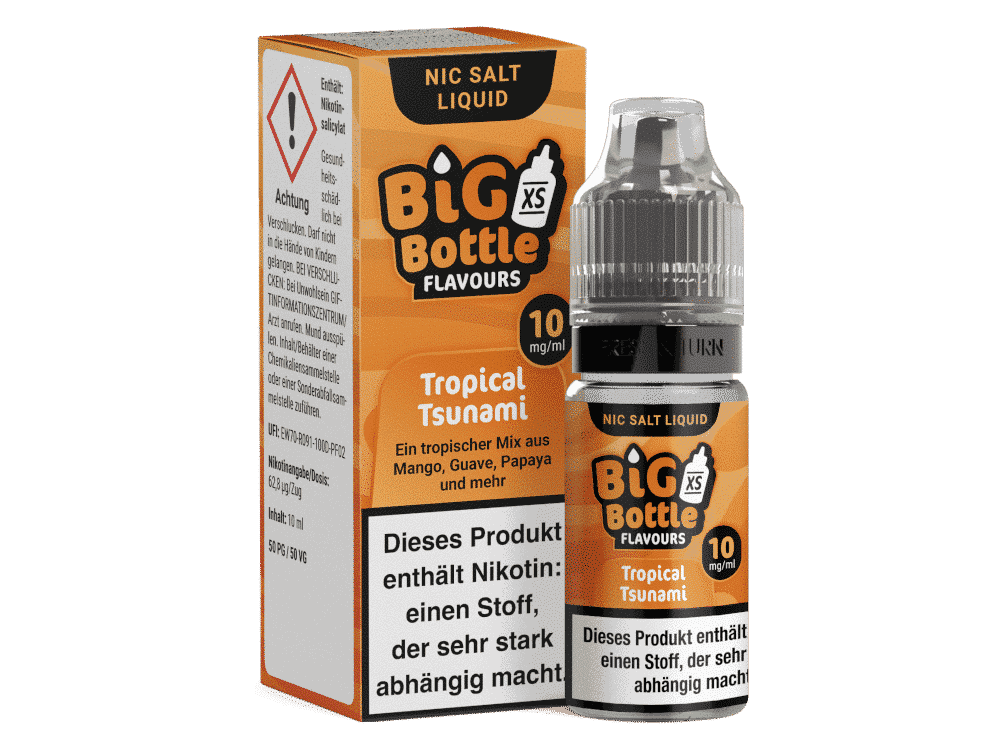 Big Bottle steht für erstklassige Liquids, und das Tropical Tsunami Nikotinsalz Liquid ist keine Ausnahme. Sie können sich auf hochwertige Inhaltsstoffe und eine sorgfältige Herstellung verlassen, die ein herausragendes Dampferlebnis gewährleisten.