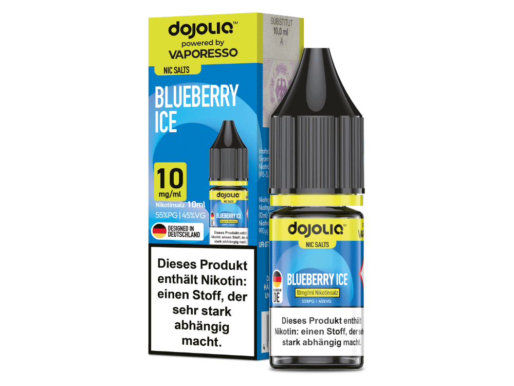 Das Dojoliq Blueberry Ice ist in handlichen 10 ml Flaschen abgefüllt und in zwei Varianten erhältlich: 10 mg/ml und 20 mg/ml Nikotin. Es ist vollständig gebrauchsfertig – einfach einfüllen und sofort genießen.