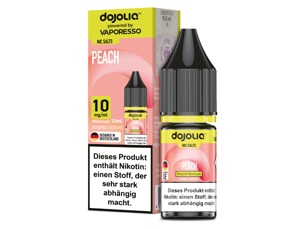Das Dojoliq Peach Liquid ist in 10 ml Flaschen abgefüllt und in den Nikotinstärken 10 mg/ml und 20 mg/ml erhältlich. Es ist vollständig gebrauchsfertig und eignet sich perfekt für Pod-Systeme und MTL-Geräte. Einfach auspacken, einfüllen und losdampfen.