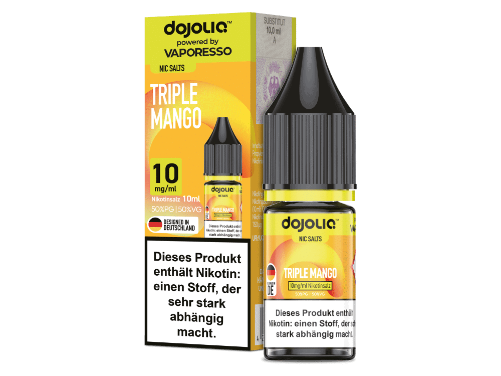 Mit dem Triple Mango Nikotinsalz Liquid von Dojoliq erwartet Sie ein intensives Geschmackserlebnis rund um die Königin der Tropenfrüchte. Drei unterschiedliche Mangosorten verschmelzen zu einem vollmundigen Gesamtbild, das süße, reife und leicht säuerliche Noten harmonisch vereint. Ein sanfter Hauch Frische rundet das Liquid ab, ohne den fruchtigen Charakter zu überdecken – ideal für alle, die exotische Aromen mit leichter Kühle bevorzugen.