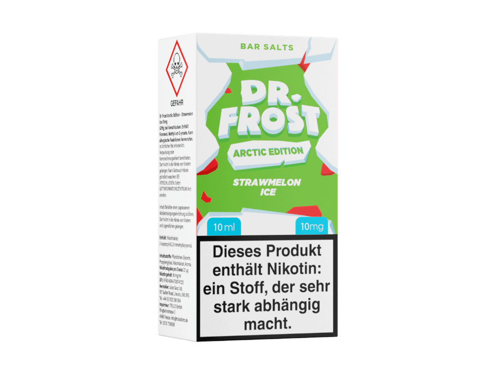 Das Strawmelon Ice Liquid gehört zur beliebten Arctic Edition von Dr. Frost, die für ihre eisigen Fruchtmischungen bekannt ist. Dank der Nikotinsalz-Formulierung genießen Sie ein besonders sanftes Dampferlebnis, das Ihnen eine schnelle und effektive Nikotinaufnahme ermöglicht – ideal für Dampfer, die auf der Suche nach einem sanften, aber intensiven Genuss sind. Erhältlich in den Nikotinstärken 10 mg/ml und 20 mg/ml, können Sie die für Sie passende Nikotinstärke wählen.