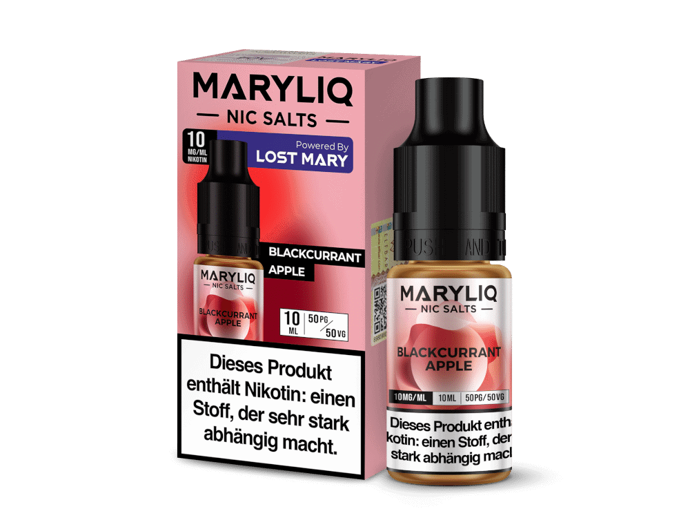 Beim Inhalieren entfaltet sich der intensive Geschmack von saftigen schwarzen Johannisbeeren, kombiniert mit dem knackigen Aroma frischer Äpfel. Diese harmonische Mischung wird durch einen Hauch Frische abgerundet, der das Dampfen zu einem erfrischenden Erlebnis macht. MARYLIQ Blackcurrant Apple bietet nicht nur eine intensive Geschmacksreise, sondern auch die bewährte Qualität von Nikotinsalz, das für eine sanfte und schnelle Nikotinaufnahme sorgt.