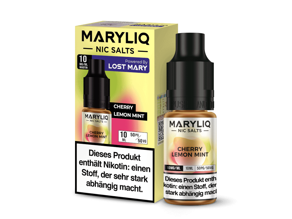 Genießen Sie die perfekte Balance aus fruchtiger Süße, spritziger Frische und kühlender Minze mit dem MARYLIQ Cherry Lemon Mint Nikotinsalz Liquid. Lassen Sie sich von der raffinierten Kombination und der hohen Qualität von MARYLIQ begeistern und erleben Sie ein unvergleichliches Dampferlebnis.