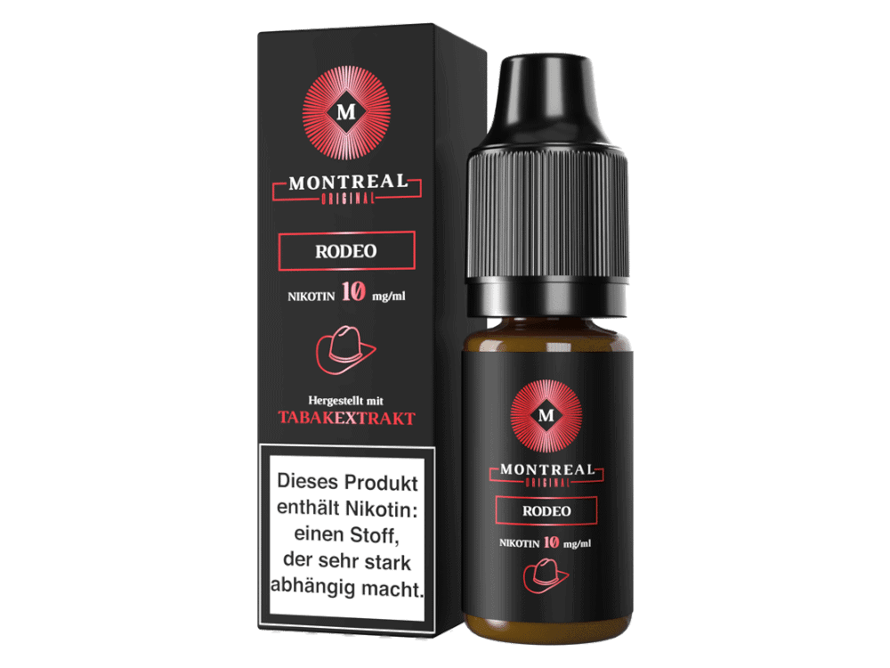 Das Rodeo Nikotinsalz Liquid von Montreal Original bringt den authentischen Geschmack von amerikanischem blondem Tabak direkt in deine E-Zigarette – mild, angenehm süßlich und sofort dampfbereit. Abgefüllt in einer kompakten 10 ml Flasche, erhältlich mit 10 mg/ml oder 20 mg/ml Nikotinsalz, ist Rodeo die ideale Wahl für alle, die einen echten, aber dezenten Tabakgeschmack suchen – ganz ohne Aufwand.