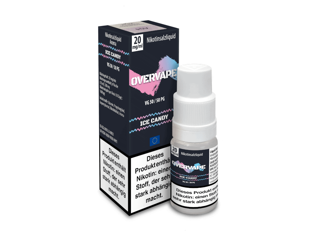 Tauchen Sie ein in ein erfrischendes und süßes Dampferlebnis mit dem Nikotinsalz Liquid “Overvape Ice Candy”. Dieses außergewöhnliche Liquid von der renommierten Marke Overvape bietet Ihnen den unverwechselbaren Geschmack von Eisbonbons, der Ihre Sinne belebt und erfrischt. Mit einer Nikotinstärke von 5, 10 und 20 mg/ml sowie eine nikotinfreie Variante sorgt es für eine intensive und zufriedenstellende Nikotinaufnahme, ideal für alle, die ein kraftvolles und zugleich kühlendes Dampferlebnis suchen. Jede Flasche enthält 10 Milliliter des köstlichen Ice Candy Nikotinsalz Liquids, das sofort gebrauchsfertig ist.