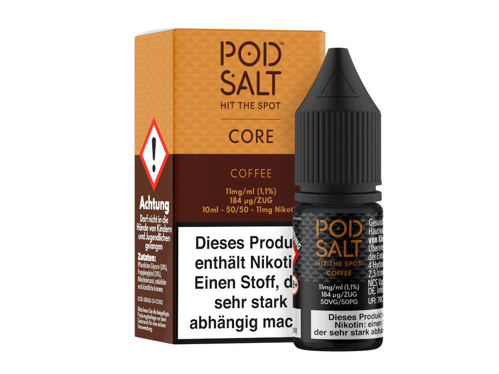 Pod Salt Core steht für innovative Aromakreationen und verlässliche Qualität. Coffee überzeugt durch sein charakterstarkes, reines Kaffeearoma – für Dampfvergnügen, das warme Erinnerungen und Alltagshighlights schafft.