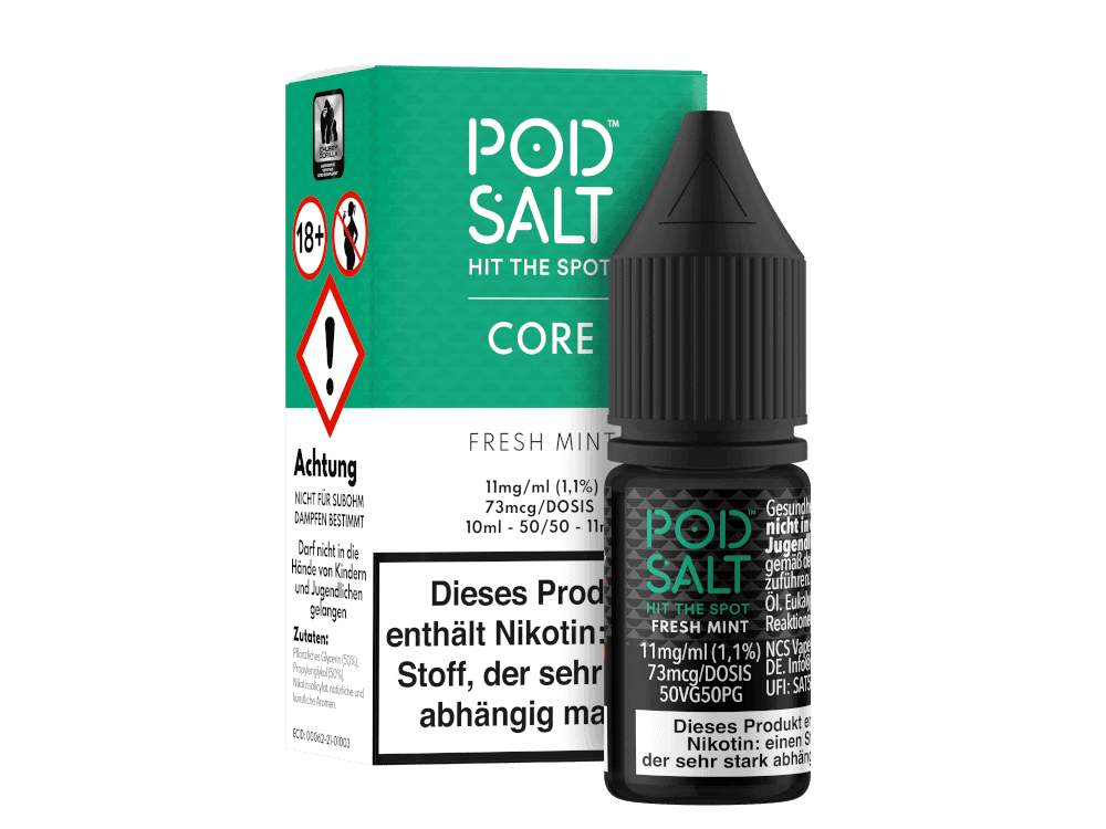 Pod Salt Core steht für innovative Liquidentwicklung und verlässliche Qualität. Fresh Mint überzeugt durch konstantes Aroma, langanhaltende Frische und eine angenehm kühle Intensität – für ein rundum belebtes Dampfvergnügen.