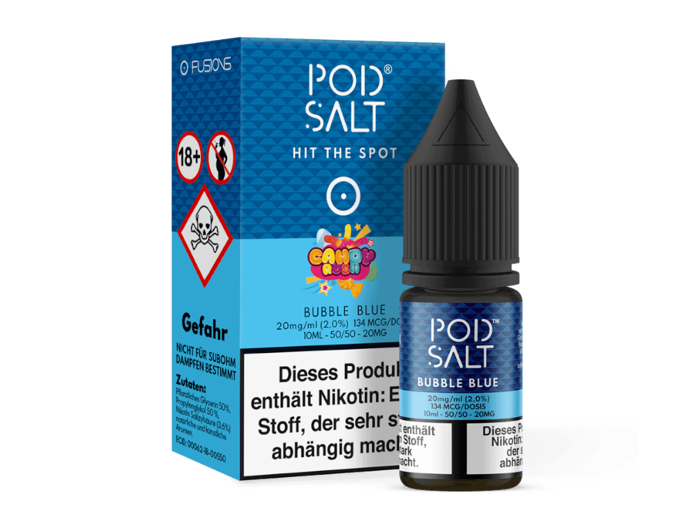 Pod Salt Fusion steht für innovative Aromakreationen und verlässliche Qualität. Bubble Blue verbindet die Freude von Kindheitsmomenten mit intensivem Geschmack zu einem Liquid, das Erinnerungen auslöst und Glücksmomente schafft.