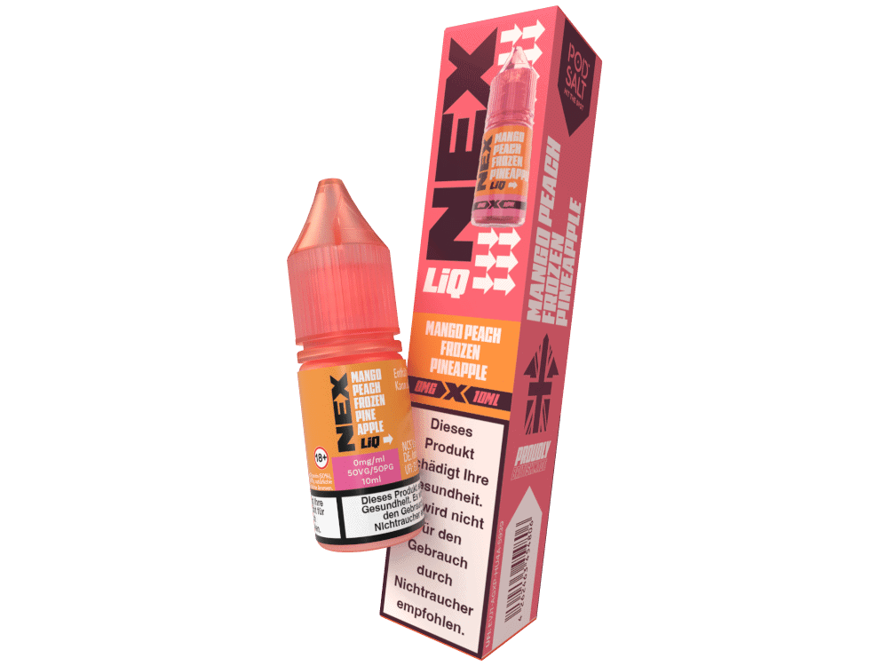Die NexLiq-Serie von Pod Salt bietet Ihnen dank ihrer hochwertigen Nikotinsalz-Formel ein angenehm sanftes Dampferlebnis, das gleichzeitig intensive Aromen entfaltet. Egal, ob Sie eine nikotinfreie Variante bevorzugen oder sich für die Nikotinstärken 10 mg/ml oder 20 mg/ml entscheiden – Mango Peach Frozen Pineapple passt sich Ihren individuellen Vorlieben an und sorgt für ein geschmacklich abgerundetes Erlebnis.