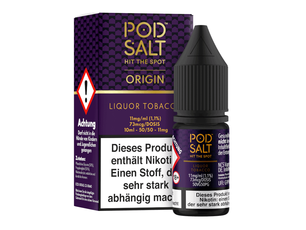 Pod Salt Origin steht für exklusive Geschmackskreationen und beständige Qualität. Liquor Tobacco schafft mit jedem Zug ein intensives, außergewöhnliches Aromaerlebnis und wird zur unverwechselbaren Wahl für Liebhaber besonderer Genussnoten.