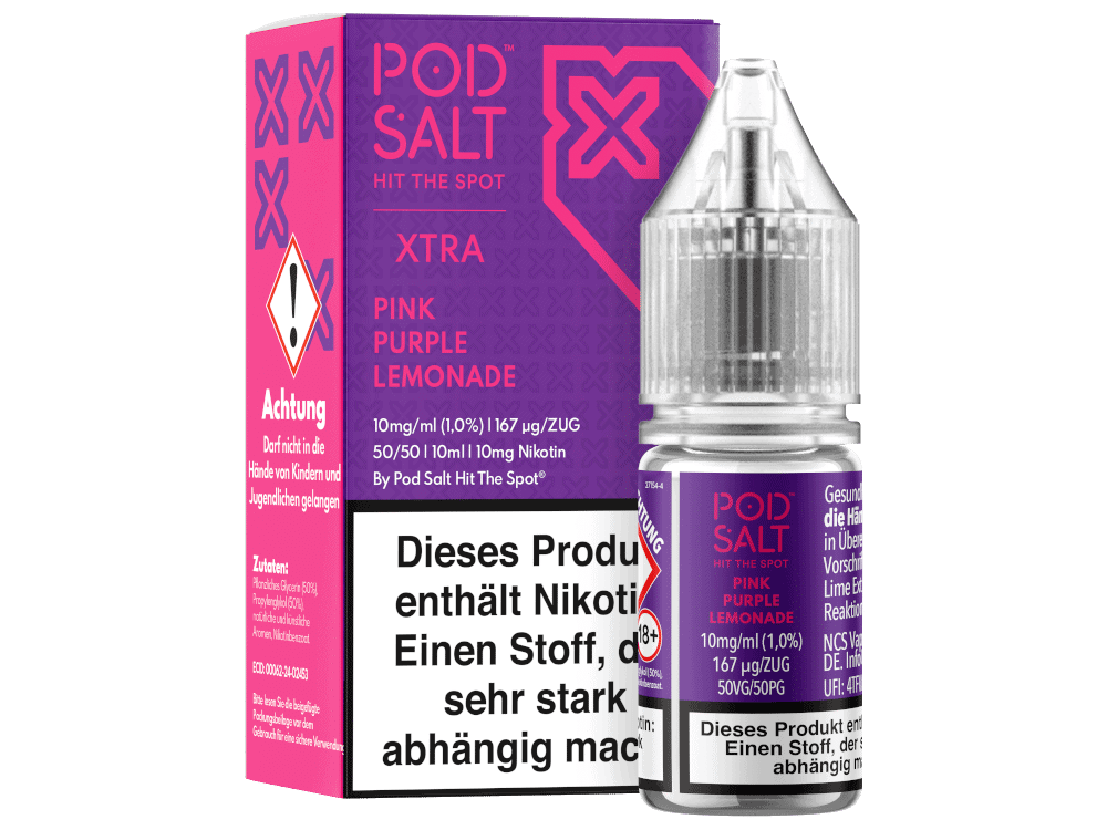 Das Pod Salt X – Pink Purple Lemonade Nikotinsalz Liquid verwandelt Ihre E-Zigarette in ein prickelndes Sommergetränk und begeistert mit einer einmaligen Mischung aus süßen, saftigen Beeren und spritziger Limonade. Jeder Zug erinnert an den fruchtig-frischen Genuss eines eisgekühlten Beerenlimonaden-Drinks, bei dem die Aromen von hellen und dunklen Beeren harmonisch mit der Zitronennote der Limonade verschmelzen – ein echtes Sommerfeeling für jeden Tag.