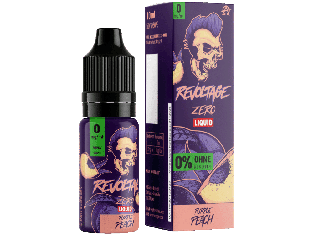 Mit Revoltage Purple Peach wird jeder Tag einen Hauch sonniger Frische und exotischer Leichtigkeit bekommen. Gönn dir diese besondere Komposition aus Pfirsich und Coolness und entdecke das perfekte Zusammenspiel aus Fruchtigkeit und Frische in deiner E-Zigarette.