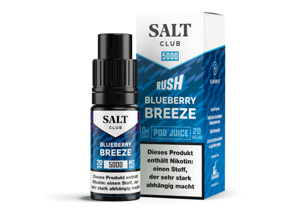Erleben Sie das erfrischende Aroma von Salt Club – 5000 – Blueberry Breeze und lassen Sie sich von dem intensiven Geschmack süßer Blaubeeren verzaubern. Bestellen Sie jetzt und genießen Sie ein intensives und erfrischendes Dampferlebnis!