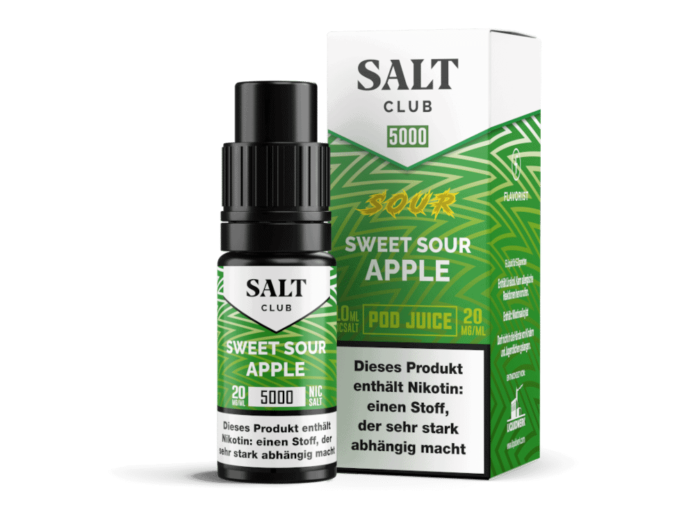 Erleben Sie das erfrischende Aroma von Salt Club – 5000 – Sweet Sour Apple und lassen Sie sich von dem intensiven Geschmack süß-saurer Äpfel verzaubern. Bestellen Sie jetzt und genießen Sie ein intensives und belebendes Dampferlebnis!