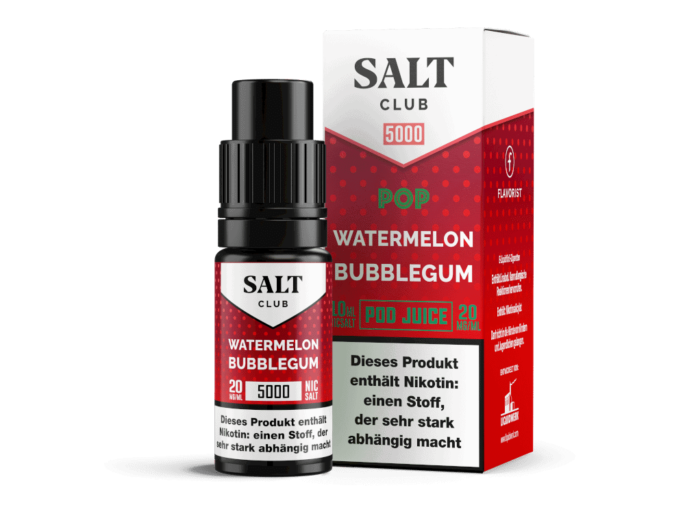 Erleben Sie das süße Aroma von Salt Club – 5000 – Watermelon Bubblegum und lassen Sie sich von dem intensiven Geschmack von Wassermelonen-Kaugummi verzaubern. Bestellen Sie jetzt und genießen Sie ein intensives und süßes Dampferlebnis!
