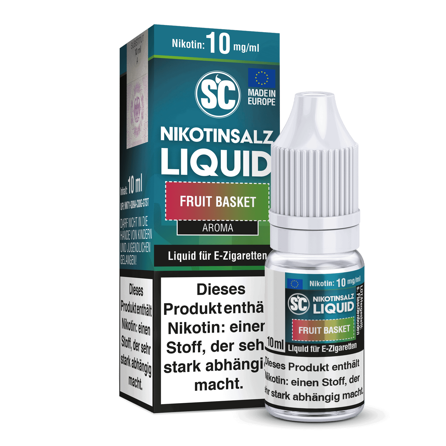 Das SC – Fruit Basket Nikotinsalz Liquid setzt auf eine ausgewogene Mischung aus Propylenglycol und pflanzlichem Glycerin (meist 50/50), hochwertige Aromen und verzichtet komplett auf Sucralose. Das Ergebnis ist ein authentischer Fruchtcharakter, der vollmundig und rein bleibt.