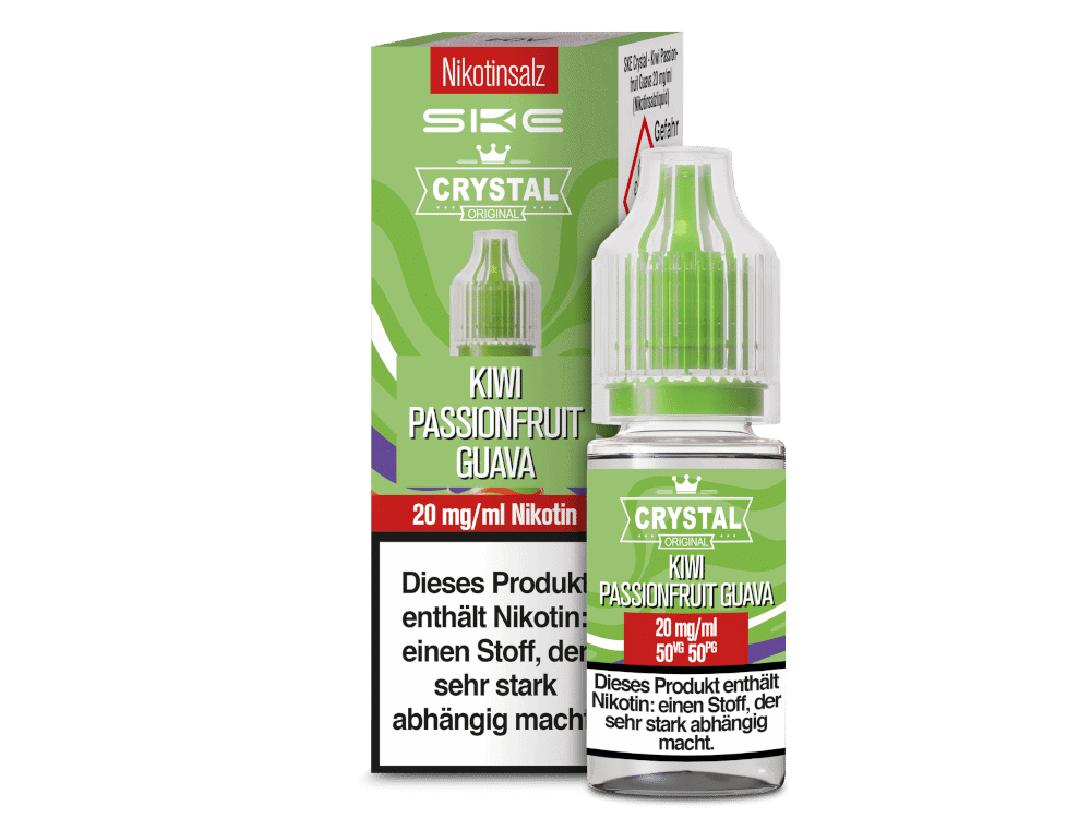 Tauchen Sie ein in das exotische Geschmackserlebnis des SKE Crystal Kiwi Passionfruit Guava Nikotinsalz Liquids – eine harmonische Mischung aus der süßen Fruchtigkeit von Passionsfrucht, Kiwi und Guave. Dieses erstklassige Liquid von SKE ist in der Nikotinstärke 10 und 20 mg/ml erhältlich und bietet Ihnen ein intensives und gleichzeitig erfrischendes Dampferlebnis. Jede Bestellung enthält eine praktische 10 ml Flasche, die sofort einsatzbereit ist und sich ideal für den direkten Gebrauch in Ihrer E-Zigarette eignet.