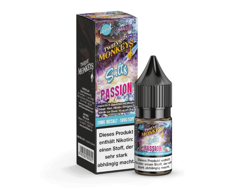 Erleben Sie mit Twelve Monkeys – Iced Passion die perfekte Verbindung aus exotischer Fruchtigkeit und angenehmer Frische – ein Liquid, das Ihnen das Gefühl eines tropischen Sommerurlaubs verleiht!
