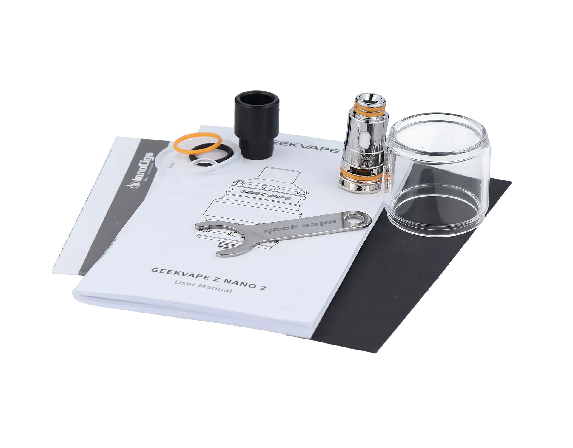 Zusätzlich erhältst du im Set einen Ersatz-Glastank mit 2 ml Volumen, ein weiteres Drip Tip, ein Tool zum Coil-Wechsel und ein praktisches Ersatzteil-Kit. Das GeekVape Z Nano 2 Clearomizer Set bietet durchdachte Technik im kompakten Format – ideal für alle, die Wert auf Flexibilität, Komfort und eine zuverlässige Dampfleistung legen.